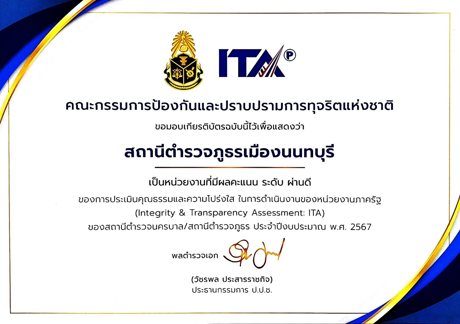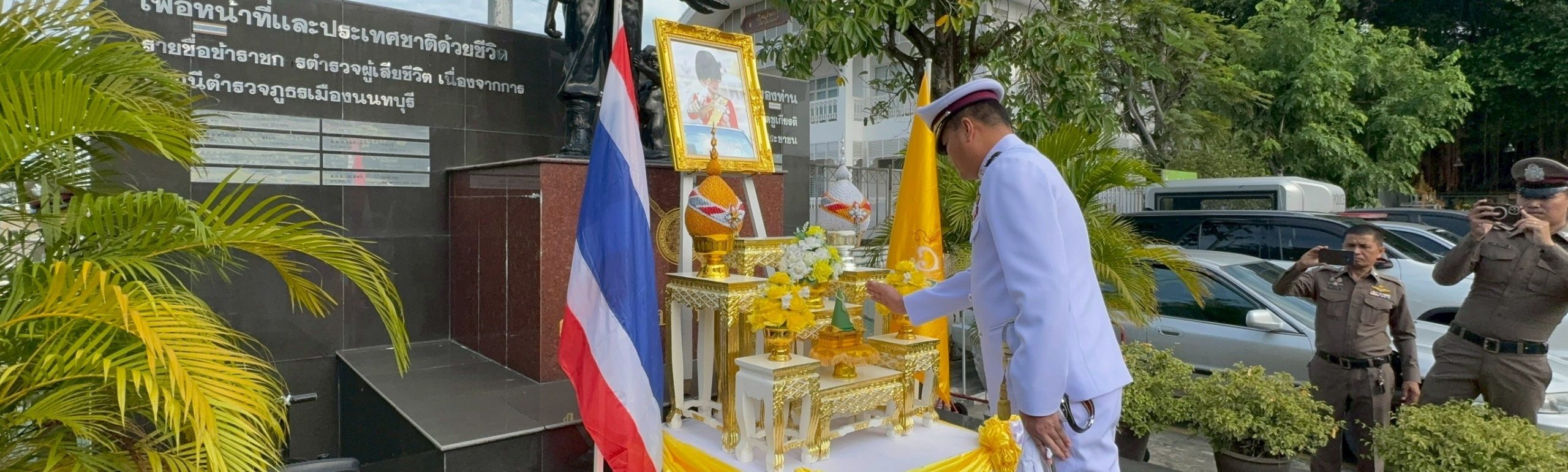 พล.ต.ต.ปรารถนา แผ่นผา ผบก.ภ.จว.นนทบุรี(นนทบุรี1) พร้อมด้วย พ.ต.อ.จาตุรนต์ อนุรักษ์บัณฑิต ผกก.สภ.เมือ