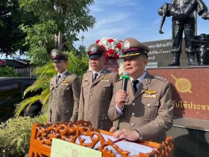 ประกอบพิธีสักการะสิ่งศักดิ์สิทธิ์ประจำสถานีตำรวจเพื่อความเป็นมงคล เนื่องในวันตำรวจ