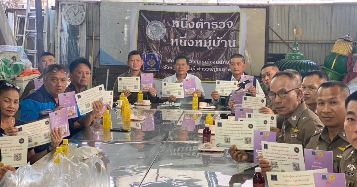 ได้ร่วมกันประชุมหารือเกี่ยวกับเป้าหมาย ชุด ชมส.ฯ ปัญหาต่าง ๆ ของชุมชน การสร้างเครือข่ายทางสังคม การป้องกัน อาชญากรรมไซเบอร์ แก๊งคอลเซ็นเตอร์ ตรวจประเมินผล และแนะนำการ ปฏิบัติของชุดปฏิบัติการชุมชนและมวลชนสัมพันธ์ และได้เดินเท้าพบปะตรวจเยี่ยมประชาชนในชุมชน เพื่อทราบปัญหา อุปสรรค ภายในชุมชน เพื่อหาแนว ในการแก้ปัญหาภายในชุมชน และ แจกคู่มือป้องกันอาชญากรรมและยาเสพติด สติ๊กเกอร์หมายเลขแจ้งเหตุด่วนเหตุร้ายและเบาะแสยาเสพติดของสถานีตำรวจภูธรเมืองนนทบุรี