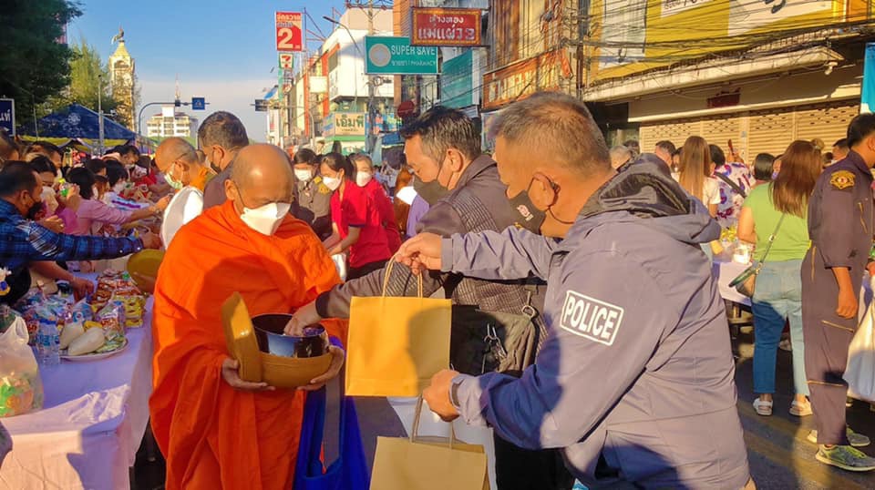 พร้อมข้าราชการตำรวจ สภ.เมืองนนทบุรี ร่วมทำบุญตักบาตร พระสงฆ์ จำนวน 99 รูป เพื่อถวายเป็นพระราชกุศล และเพื่อความเป็นสิริมงคลเนื่องในวันขึ้นปีใหม่ ประจำปี 2566 ณ บริเวณท่าน้ำนนทบุรี