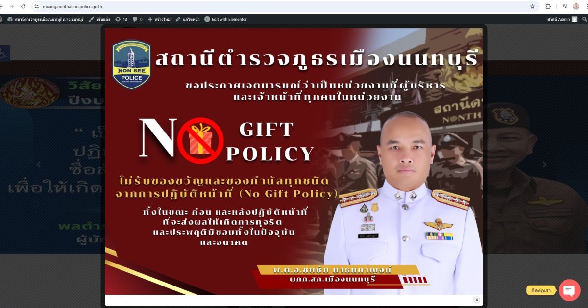 ประกาศนโยบายไม่รับของขวัญและของกำนัลทุกชนิด (No Gift Policy) จากการปฏิบัติหน้าที่