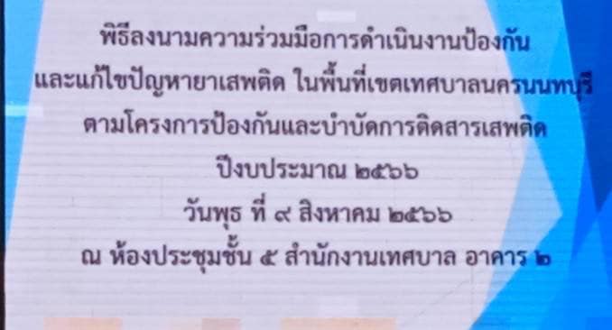 พ.ต.อ.จาตุรนต์ อนุรักษ์บัณฑิต ผกก.สภ.เมืองนนทบุรี ร่วมพิธีลงนามความร่วมมือการป้องกันและแก้ไขปัญหายาเสพติด ในพื้นที่เทศบาลนครนนทบุรี ปีงบประมาณ 2566