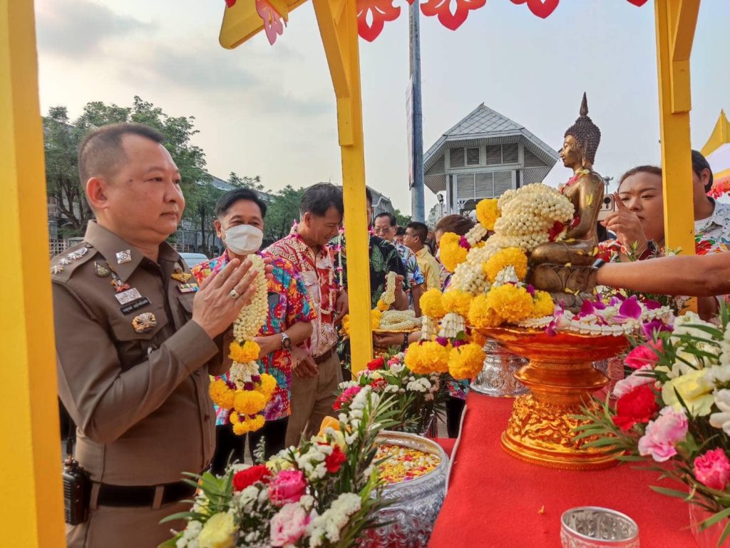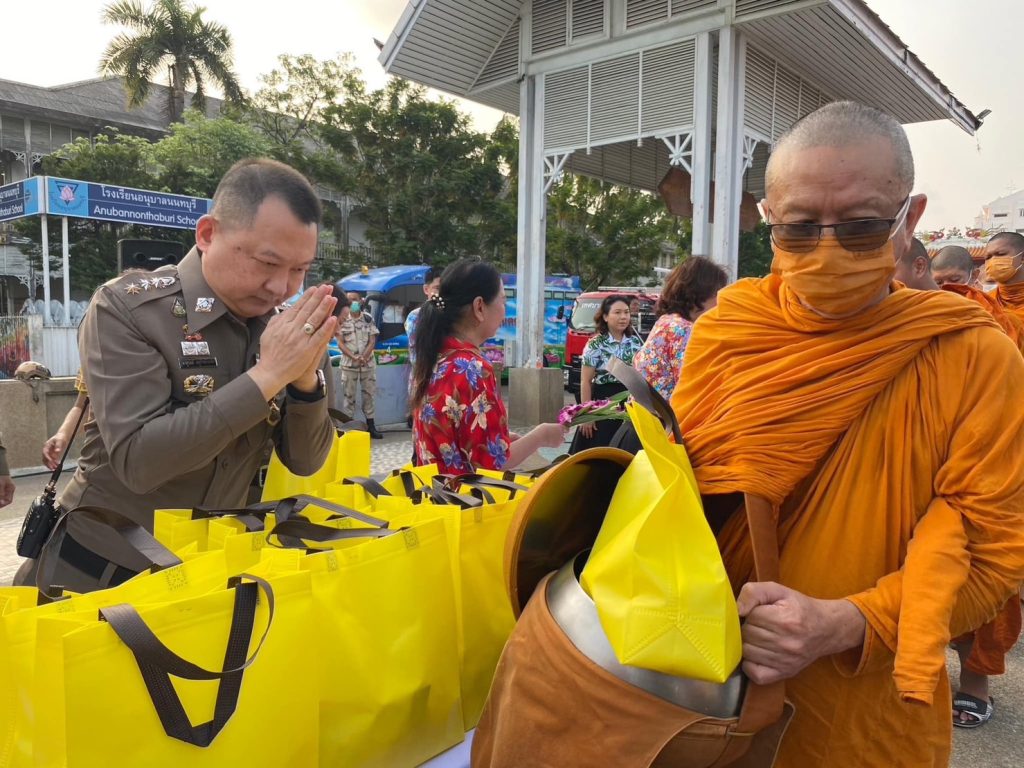 นายสุธี ทองแย้ม ผจว.นนทบุรี เป็นประธานพิธี ตักบาตรข้าวสาร อาหารแห้งเนื่องในวันสงกรานต์ ๒๕๖๖ โดยมี พ.ต.อ.จาตุรนต์ อนุรักษ์บัณฑิต ผกก.สภ.เมืองนนทบุรี พร้อม ข้าราชการตำรวจในสังกัด สภ.เมืองนนทบุรี, นายพิรุณ วิมลอักษร นายอำเภอเมืองนนทบุรี, นายสมนึก ธนเดชากุล นายกเทศบาลนครนนทบุรี, พร้อมหัวหน้าส่วนราชการในพื้นที่, ประชาชนทั่วไป, ร่วมงาน”ประเพณี วันสงกรานต์ ประจำปี ๒๕๖๖
