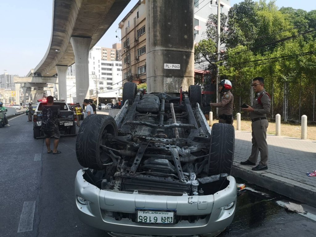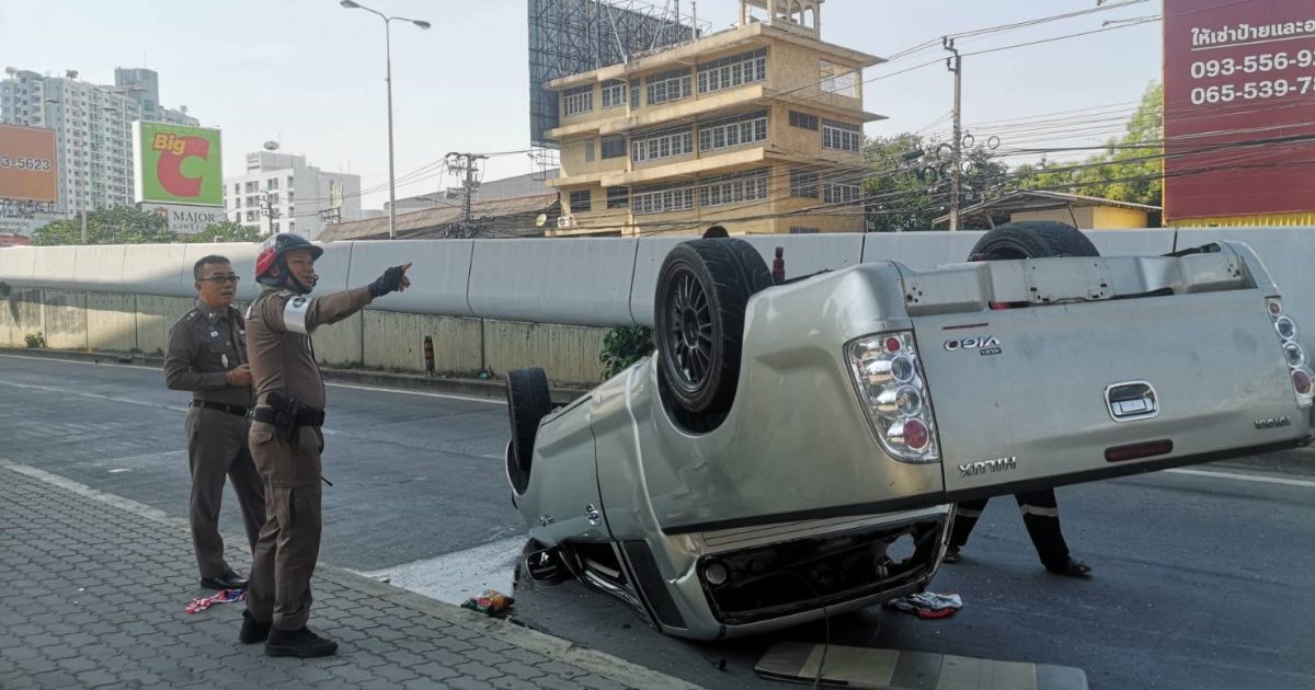 อุบัติเหตุ รถยนต์กระบะพลิกคว่ำ มีผู้ได้รับบาดเจ็บ