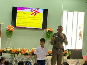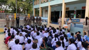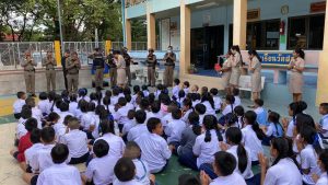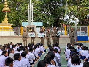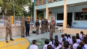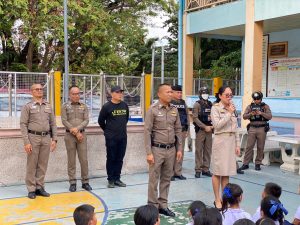 ร.ต.ท.นพรัตน์ มาระศรี ร.ต.ต.ดร.ภาคิน สีสุธรรม ร.ต.ต.สมคิด ศิริบุรมณ์ พร้อมกำลังชุด ขมส. และสายตรวจ เข้าให้ความรู้ และฝึกซ้อมเบื้องต้น การเอาชีวิตรอดจากเหตุกราดยิง Active shooter (หนี ซ่อน สู้) โรงเรียนวัดฝาง ตำบลบางเขน อำเภอเมืองนนทบุรี จังหวัดนนทบุรี โดยมี ผู้อำนวยการสถานศึกษาและคณะครู นักเรียน เข้าร่วมกิจกรรม จำนวน 150 คน