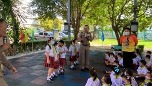 ร.ต.ท.นพรัตน์ มาระศรี ร.ต.ต.ดร.ภาคิน สีสุธรรม ร.ต.ต.สมคิด ศิริบุรมณ์ พร้อมกำลังชุด ขมส. และสายตรวจ เข้าให้ความรู้ และฝึกซ้อมเบื้องต้น การเอาชีวิตรอดจากเหตุกราดยิง Active shooter (หนี ซ่อน สู้) ศูนย์พัฒนาเด็กเล็กเทศบาลนครนนทบุรี ตำบลบางเขน อำเภอเมืองนนทบุรี จังหวัดนนทบุรี โดยมี หัวหน้าศูนย์พัฒนาเด็กเล็ก บุคลากรพี่เลี้ยงเด็ก เข้าร่วมกิจกรรม จำนวน 125 คน