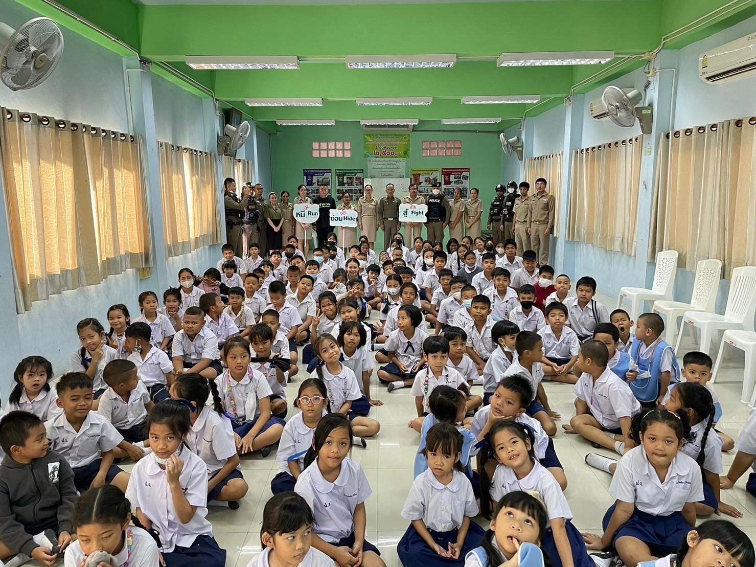 เข้าให้ความรู้ และฝึกซ้อมเบื้องต้น การเอาชีวิตรอดจากเหตุกราดยิง Active shooter (หนี ซ่อน สู้) โรงเรียนวัดฝาง