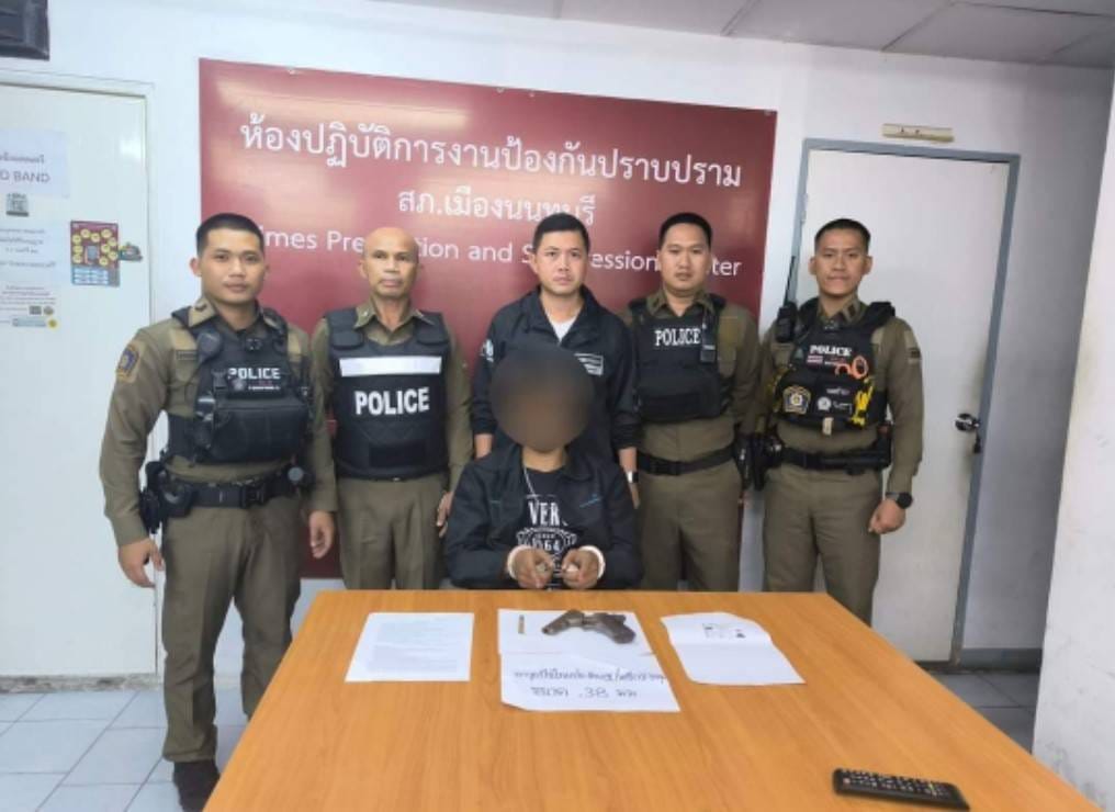#ตีให้ตายคลายทุกข์คนนนท์ นนทบุรี วงจรปิด ตร.ไหวพริบดี ออกเวรนั่งกินข้าวต้ม เจอวัยรุ่นพกปืนจอดหน้าร้า