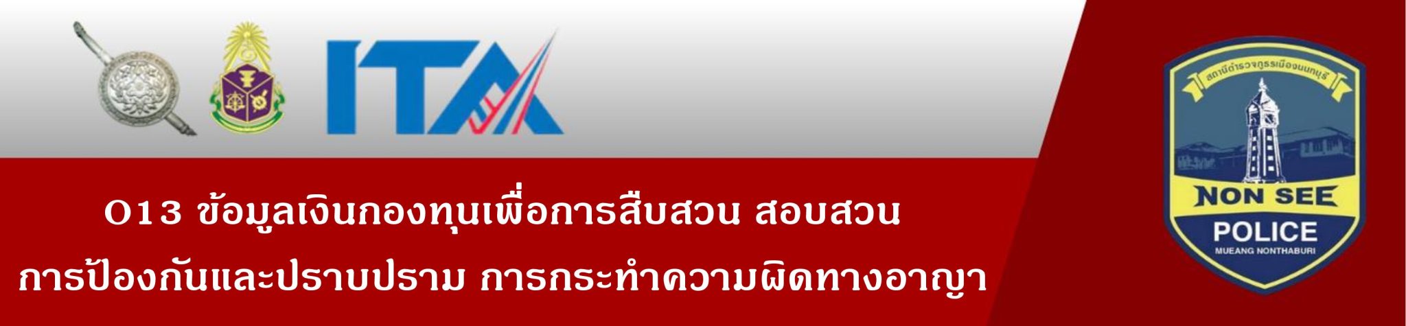 • O13 ข้อมูลเงินกองทุนเพื่อการสืบสวน สอบสวน การป้องกันปราบปราม การกระทำความผิดทางอาญา
